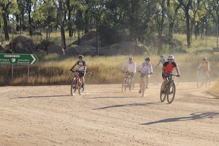 Mareeba - AlmadenThinking about the ride to Forsayth, I would have to say it was fun and a challenge. There were times when it was easy and times when it was technical. The weather couldn't have been better. The first day was the tester with a mixture of rail trails and dirt roads. The highlight of the morning was Laura Garner's family farm for morning tea; great homemade cakes and fresh fruit with the dragonfruit the best I have ever tasted. We got into Dimbulah for a great lunch and lots of shaded trees with everyone looking for a coffee shop that was shut. And then just to test our resolve, a 60k section on the highway. The first day ended at the Almaden pub where we all had a nice cold drink and some chips that were delivered in the last century but the beer was so good served by a pleasant young lady. That night we were treated like royalty - the food we were given was first class and I ate enough food for about four people . 135km. |